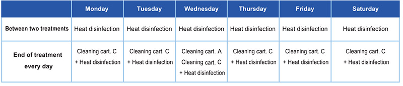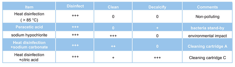 3. Cleaning cartridge A+ heat disinfection( ( > 85 C): Remove organic deposits, fats and proteins + heatdisinfection (finish in one time).