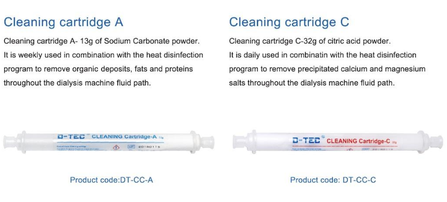 2. Cleaning cartridge C+ heat disinfection( > 85 C): Remove precipitated calcium and magnesium salts + heatdisinfection (finish in one time) .