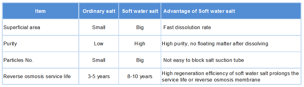 Comparison table of soft water salt and ordinary salt: